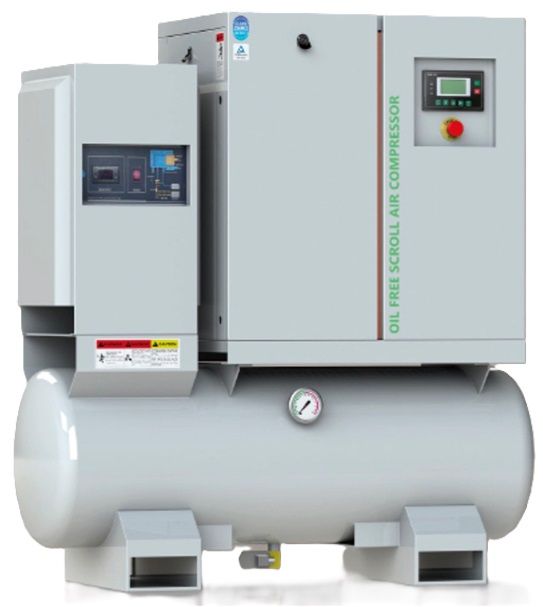Спиральные компрессоры, как и винтовые, способны работать круглосуточно. Также они имеют ряд преимуществ: практически бесшумные, компактные, нет необходимости в частом техническом обслуживании. Безмасляные спиральные копрессоры обеспечивают полное отсутствие масла в сжатом воздухе, поэтому широко применяются в фармацевтике, производстве продуктов питания и напитков, текстильной промышленности. Также одна из важных областей их применения: кондиционирование воздуха и холодильное оборудование.