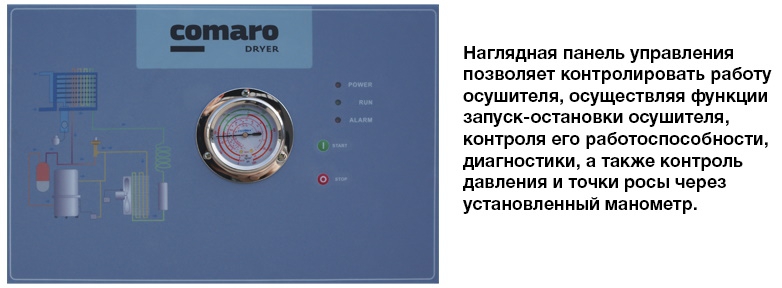 - Обеспечение автоматической защиты компрессора и осушителя от перегрузок при превышении нормативных значений по температуре и объему осушаемого воздуха.